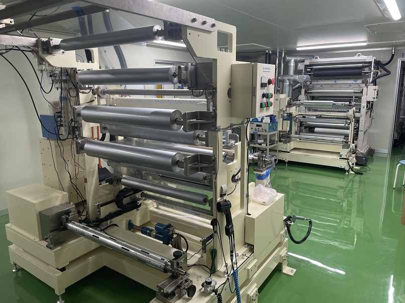 両面塗工が可能なコーティングマシン(マイクログラビア、スロットダイ)。