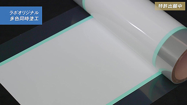 - 2つ以上の塗料で重なることなくストライプ塗工や多色塗工が可能。