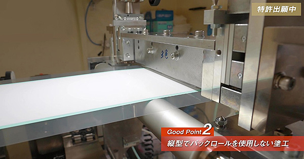 - 低粘度塗料でも液ダレの少ない、低速で厚膜塗工が可能。