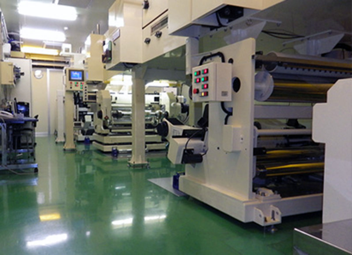 同研究所では現在、8系列のコーティングマシンを保有しています。4種類の塗工方式(ダイ・ナイフ・アプリケータ・マイクログラビア)に対応した「YS300」装置、従来装置では不可能だった数マイクロメートルの薄膜から数十マイクロメートルの表裏間欠塗工が可能な「MP1600」装置を用い、電池部材、医薬製薬分野での需要取り込みを目指しています。